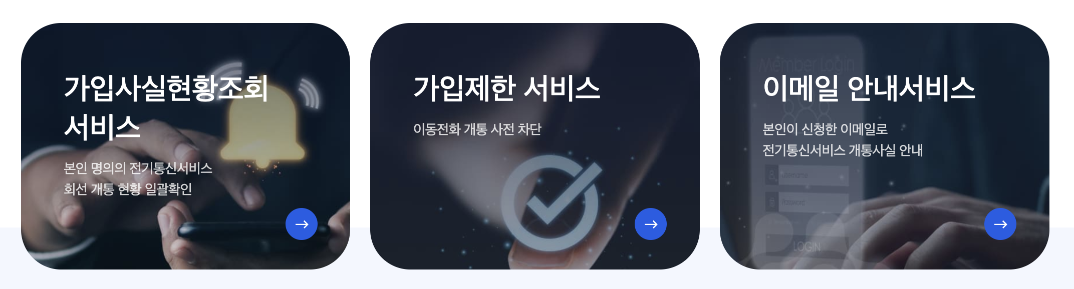 - SMS 알림: 누군가 내 명의로 개통 시, 즉시 문자 알림