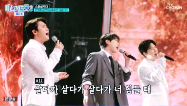 - 안성훈과 손빈아, 추혁진이 함께 부른 ‘살다가’ 무대 역시 깊은 울림을 남겼습니다.