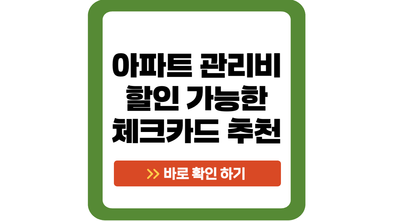 아파트 관리비를 카드로 납부하면 어떤 점이 좋을까요? 더 나아가 할인까지 받을 수 있다면? 이 글에서는 아파트 관리비 카드 납부 방법부터, 혜택이 뛰어난 추천 신용·체크카드까지 자세히 안내드립니다. 각 카드사별 조건 및 유의사항도 함께 정리했으니, 카드 혜택으로 고정비를 절약하고 싶은 분들은 꼭 끝까지 읽어보세요.