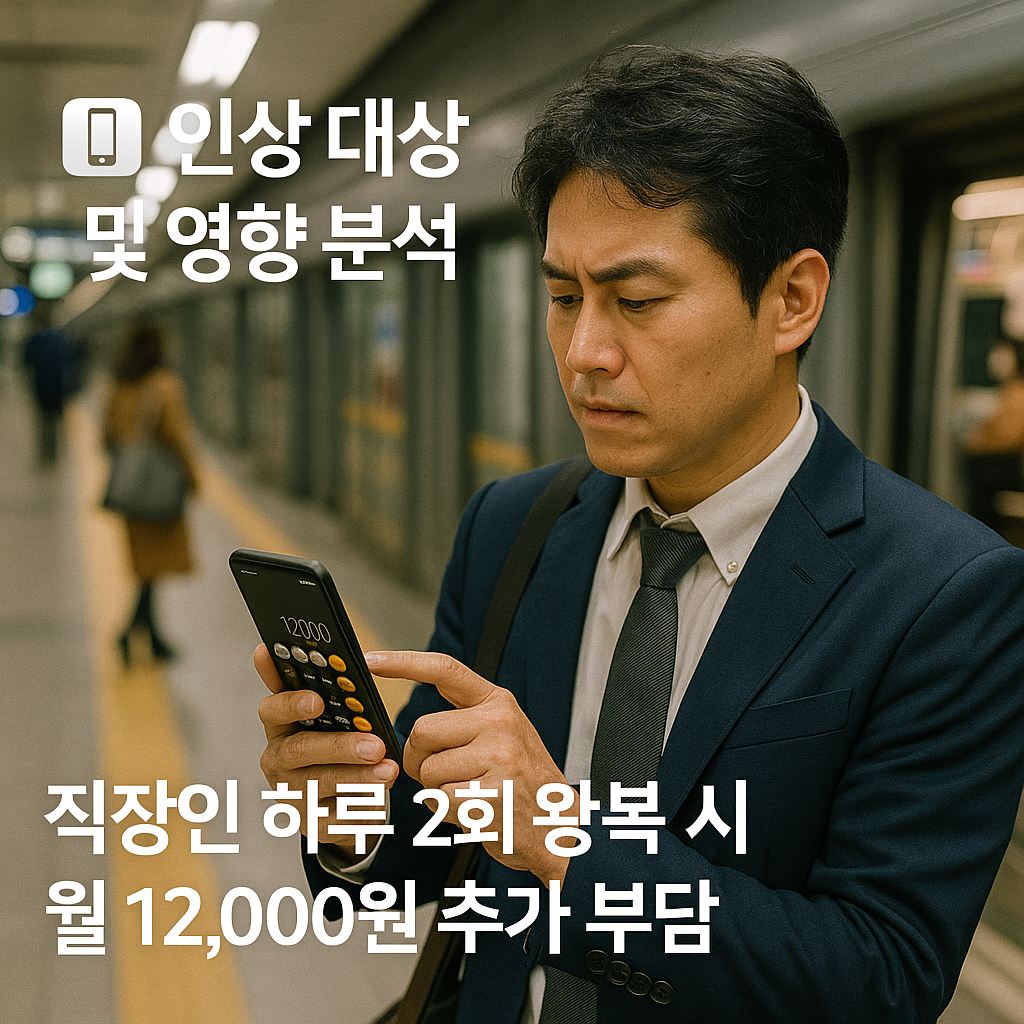 - 직장인: 하루 2회 왕복 시 월 12,000원 추가 부담