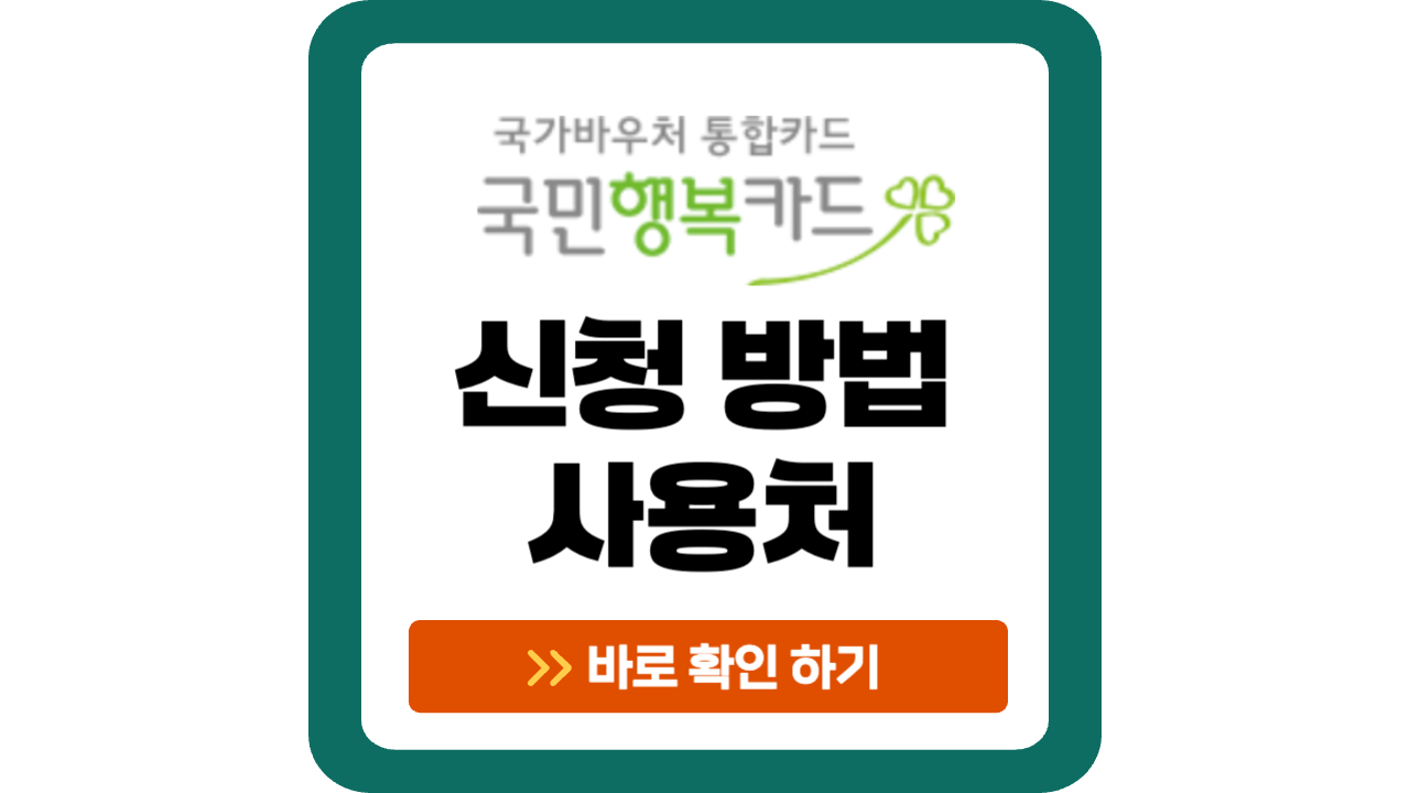 - 실물 카드 외 모바일 국민행복카드도 사용 가능 (일부 바우처에 한함)