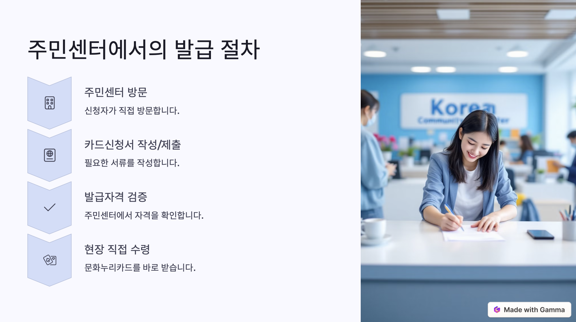| 오프라인 신청 | 주민센터 방문 후 문화누리카드 신청서 작성 및 발급 |
