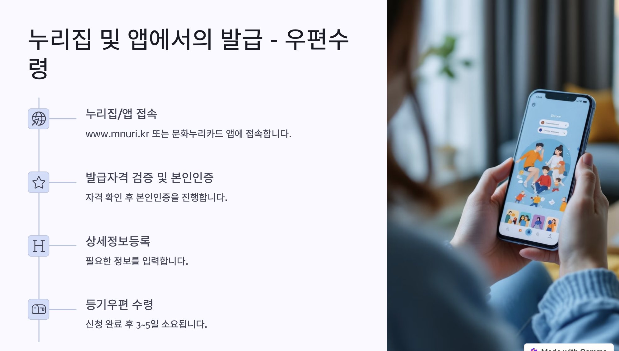 | 온라인 신청 | 📌 문화누리카드 누리집, 모바일 앱 신청 |