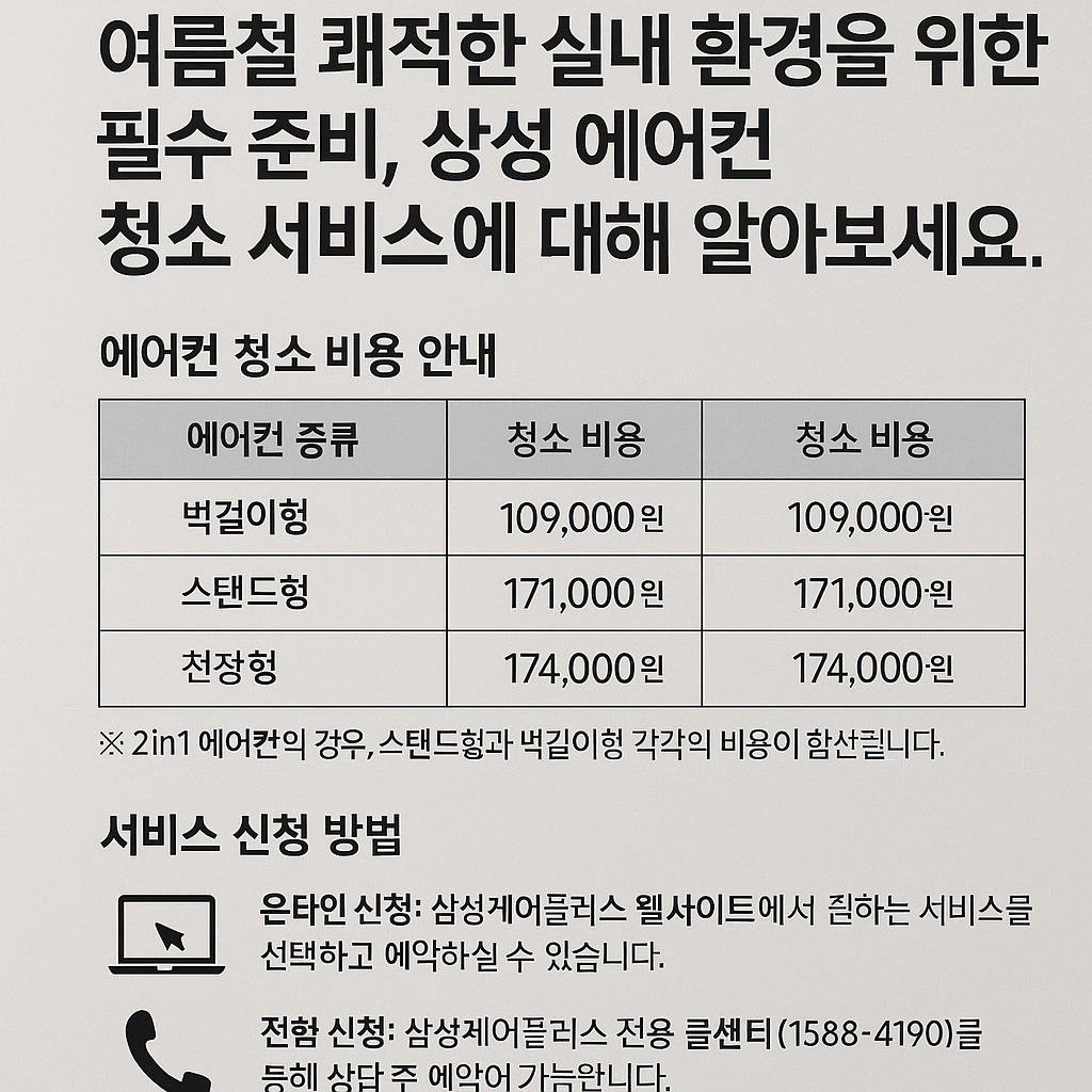 에어컨 청소 안 하면 냄새, 세균, 전기요금 폭탄까지?! 2025 삼성 에어컨 청소 서비스 가격부터 신청 방법, 무료 점검까지 지금 바로 확인하고 후회 없는 여름 준비하세요!