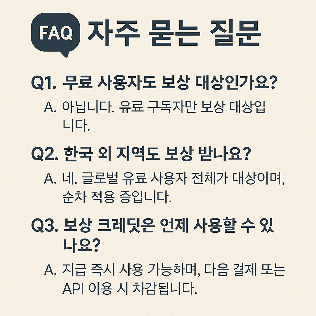 - 이번 보상은 한국 사용자를 포함한 전체 유료 이용자 대상으로 확대 적용 중